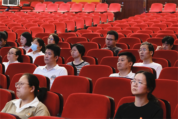 宋健从“学而时习 强化思想政治意识”“踏石留印 夯实和谐稳定基石”“刀刃向内 打造清朗校园风貌”“与时俱进 增强引领凝聚力量”“行动铸魂 提升队伍建设水平”和“机制筑轨 增强班子履职能力”六个方面总结了学校上半年党建及全面从严治党工作。学校继续深入实施“党委领导的校长负责制”机制,大力构建高质量党建工作体系,往高峰攀、往实里做、往深处走,为实现高质量发展和事业目标汇聚更为澎湃的红色力量。