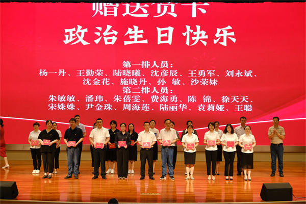 政治生日 追忆初心 党委委员、副校长周卫星为政治生日党员颁发政治生日贺卡。党委委员、副校长杨一丹领誓,全体党员起立,举起右拳,重温入党誓词。“我志愿加入中国共产党,拥护党的纲领,遵守党的章程……”铿锵有力的宣誓声响彻全场。