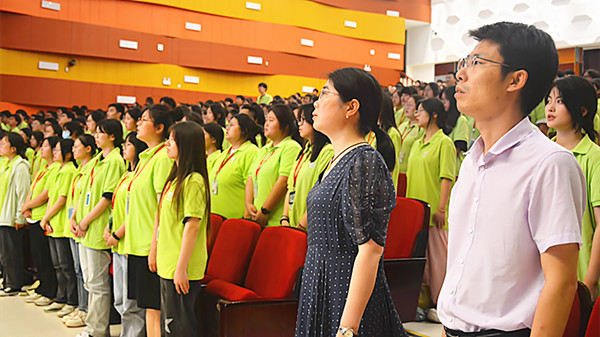庄严雄壮的国歌奏响,所有师生立正,仰望大屏,齐声高唱,唱出了对祖国明天的殷殷祝福和期待,唱出了对祖国未来的百倍信心和希望!