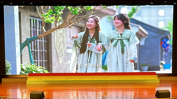 散学典礼的最后是经贸系学生的节目展演时间。首先是“醉爱小民歌”社团的MV视频作品,一曲《声声慢》,一卷“柳西半街”的婉约,真正将经典融入了学生们心间;随后,社团学生又演绎了新海门山歌《喊一声我的海门老乡》,那一句句深情的呼唤,道出了家乡的亲,家乡的情。