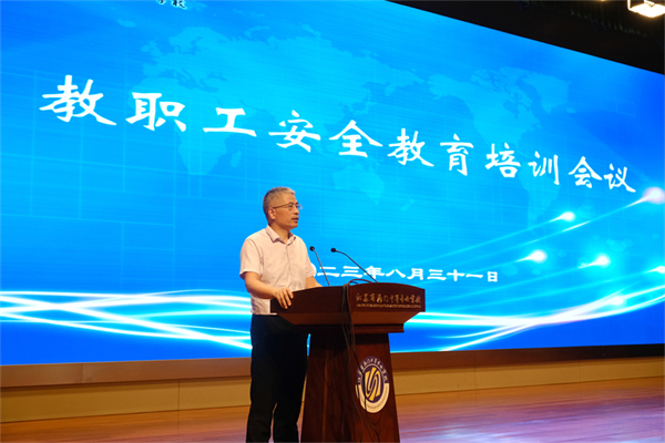 安全教育培训 校党委副书记、副校长周桂岐作安全教育培训。培训围绕校园交通安全、网络安全、校园安全隐患排查、消防安全、门卫管理、电信诈骗、食品安全、实训管理等方面展开。周桂岐指出,校园安全无小事,安全工作涉及方方面面,关乎每位师生,要以“有时时放心不下”的责任感强化安全意识,加大安全宣传力度,形成“人人抓安全,事事讲安全”的良好氛围,确保校园安全零事故。