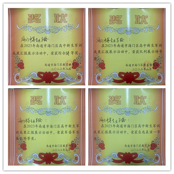 9月1日,我校2023级新生军训团队精彩亮相海门区军训成果展演赛场。来自全区7个学校的代表团队,在队列展示和自选表演两个项目中进行了激烈的比拼,我校代表队以飒爽的军姿、昂扬的精神、出色的表现一举夺得综合特等奖第一名、队列展示项目特等奖第一名、军姿军容特等奖第一名和自选表演一等奖。