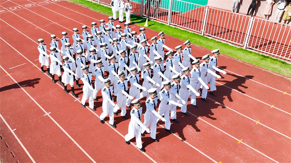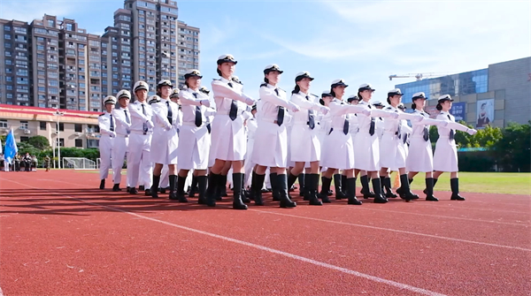 队列方阵由来自六大系部的53名学生组成,自选表演方阵学生来自经贸系,在军训汇演强化训练中,他们无惧骄阳,勇于挑战,用海专精神书写出了高分答卷。