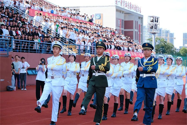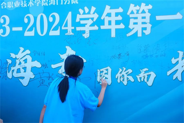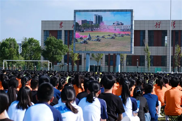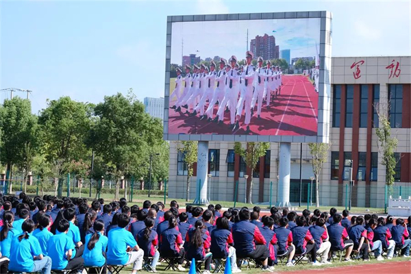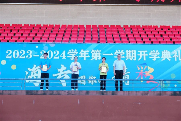 9月2日下午3点,江苏联合职业技术学院海门分院(海门中专)新学期开学典礼隆重举行。8000多名师生齐聚学校大操场,共同开启新征程,筑梦新未来。校领导班子成员出席活动。团委黄端微老师主持活动。 升旗仪式 “全体肃立,奏唱国歌,行注目礼。”在庄严的国歌声中,开学典礼正式开始。 全体师生观看了海门区新生军训成果汇报展示活动中学校代表队勇夺综合特等奖、队列展示特等奖、军姿军容特等奖和自选表演一等奖的短视频,参与展演的128名学生以“敢拼、敢闯、敢为”的精彩表现为新学期献上了一份厚礼。 入学仪式 学长为2023级新生代表佩戴校徽。以海专为荣,为海专添彩。融入海专和顺大家园,坚定归属感,与海专精神血脉相连,将“尚德精艺”传承发扬。 通过“专转本”进入本科院校深造的学长沈晨曦、努力冲刺职教高考的财贸系21YZ05学生顾津瑜分别分享成功经验和学习心得,鼓励同学们树立明确目标、养成良好习惯,以积极向上、勇于探索、坚定不移之心拥抱未来。 书记颁奖 党委书记宋健为2023年获评省、市级“三创优秀学生”“优秀学生干部”荣誉称号的学生颁奖,以榜样激励全体学生奋力奔跑,遇见最美好的自己。 校长寄语 党委副书记、校长茅一娟复盘全校师生众志成城实现学校跨越式发展的辉煌成就,以“海专,因你而精彩”为主题,围绕“明”字,从“明目标,守望心中的一轮白月光”“明规矩,严守身边的一方净土”“明责任,扛起肩上的一份担当”三个方面提出具体要求,勉励全体学子用自己的刻苦、坚持、奋斗,学好文化,掌握技能,找到适合自己的平台,放飞梦想,创造自己的美丽人生,努力取得一个自己满意、家长肯定、同伴认可、集体想要的最好结果,在学校这片大有作为的希望之地上写下精彩的人生答卷。 师生铭志 全场共同唱响《海专》,一起宣读校训、校风、学风,签名立志,出发新征程,谱写新华章。