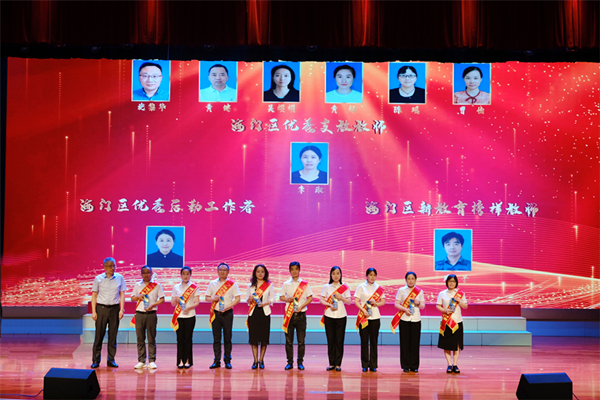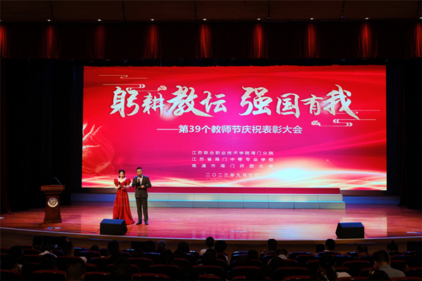 9月7日下午,江苏联合职业技术学院海门分院(海门中专)举行第39个教师节庆祝表彰活动,感恩辛勤耕耘,弘扬榜样精神,凝聚实干力量。活动在庄严的国歌声中拉开序幕。