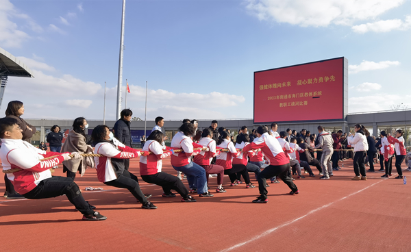11月24日下午,海门体育中心人声鼎沸,加油欢呼声此起彼伏。来自全区各高中(中专)、义务教育管理集团、幼教集团、教体局机关、直属单位、区总工会的32支队伍近600名教职工参赛的拔河比赛精彩开赛。海门中专代表队一路披荆斩棘,最终以强劲实力勇夺桂冠!