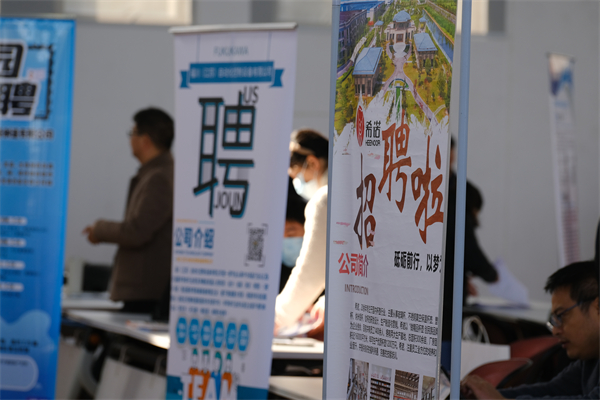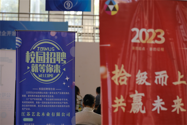 活动现场人头攒动,气氛热烈。学生们拿着简历穿梭在招聘展位间,寻找心仪的企业和岗位,不时驻足观看企业招聘信息,了解工作内容、薪资待遇等。