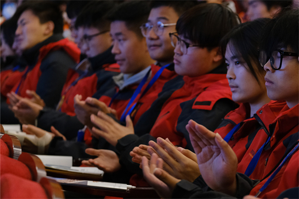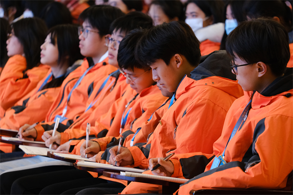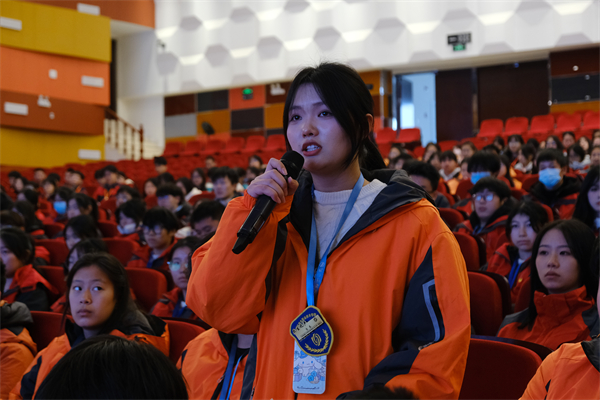 从亚运会青年运动员和志愿者“燃行动”,到优秀毕业生龚昱宁的“暖青春”,再到逆袭为博士的职高生周信静的“亮人生”,宋健引经据典,通过富有哲思的视频和鲜活生动的事例,把历史和现实贯通,引导学生思考,归纳出青年学子应有四种姿态:一要“立心”,“修身律己、崇德向善”,感恩社会,奉献他人;二要“立行”,掌握真才实学,努力成为可堪大用的栋梁之材;三要“立身”,树立正确的三观,永葆善良、友爱、互助的青春本色;四要“吃苦”,以坚定的意志力和专注力敢于追梦、勤于圆梦。