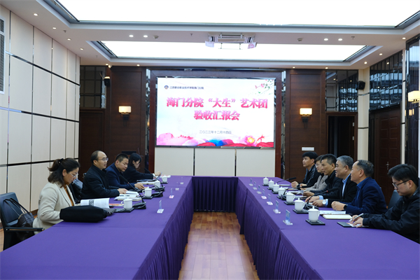 12月14日下午,江苏联合职业技术学院艺术团创建现场验收专家组组长、淮安技师分院副校长茆仁忠,专家组成员、徐州财经分院纪委书记董夙慧,专家组成员、南京中华中等专业学校副校长黄飞,专家组联络员姜希莅临海门分院,对海门分院“大生”艺术团创建工作进行现场考察验收。南通市海门区教育体育局副局长黄颖泉陪同考察,海门分院党委书记宋健,党委副书记、校长茅一娟,副校长陈小军等热情接待。