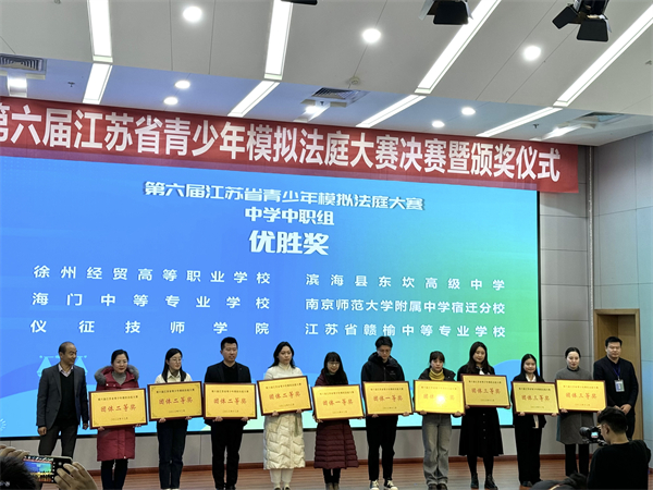 2023年12月17日,第六届江苏省青少年模拟法庭大赛决赛在南京师范大学举行,海门中专代表队作为南通市唯一入围队伍参加了省赛的激烈角逐,最终脱颖而出,凭借高质量书状及精彩庭审表现斩获一等奖,刷新了模拟法庭大赛的最佳成绩记录。