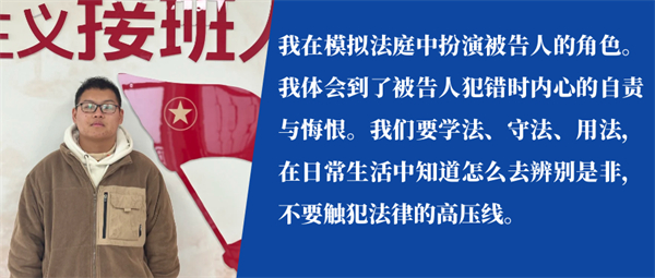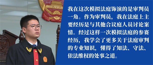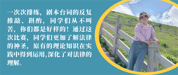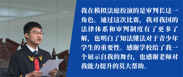 “风雨无阻是心态。”大赛自10月份启动以来,南通团市委、海门团区委悉心指导,南通市海门区人民法院彭文甫庭长多次现场指教,学校党委、校长室领导亲临现场鼓舞士气,校团委牵头,吴华华、蔡丽鸳两位指导教师和全体参赛选手经过几十次剧本打磨和排练,最终,汗水浇灌丰收果,耕耘不辍植美好。