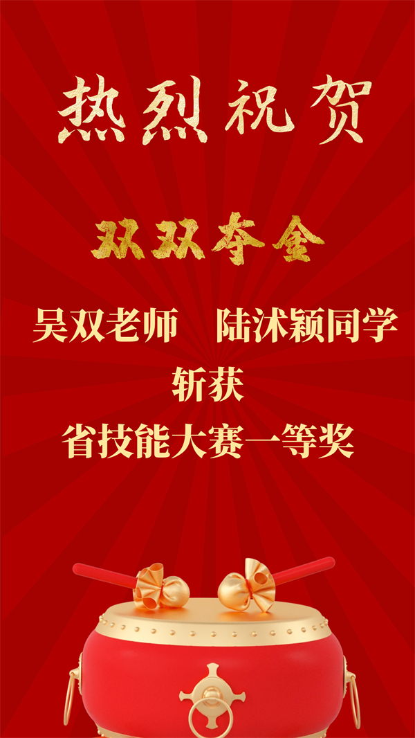 12月22日上午,江苏省职业院校技能大赛中职文化艺术类艺术设计项目赛点传来特大喜讯,海门中专财贸系教师吴双斩获教师组省一等奖,财贸系学生陆沭颖斩获学生组省一等奖第一名,双双夺金!