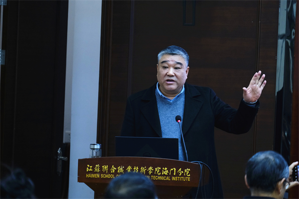 座谈交流 宋健对远道而来的客人们表示热烈欢迎。宋健从张謇先生的职业教育思想说起,介绍了学校的基本情况和工作亮点,以海专实践为范例归纳了学校改革发展过程中形成的“五字真经”:抓事业发展,坚持一个“红”字;抓教育教学,致力一个“恒”字;抓学生管理,致力一个“慧”字;抓教师队伍,致力一个“聚”字,抓特色课程,致力一个“实”字。宋健希望,在新一轮发展中,双方互相借鉴成功经验,进一步加强交流合作,为发展提速,为事业加分,携手共创职业教育的美好未来。