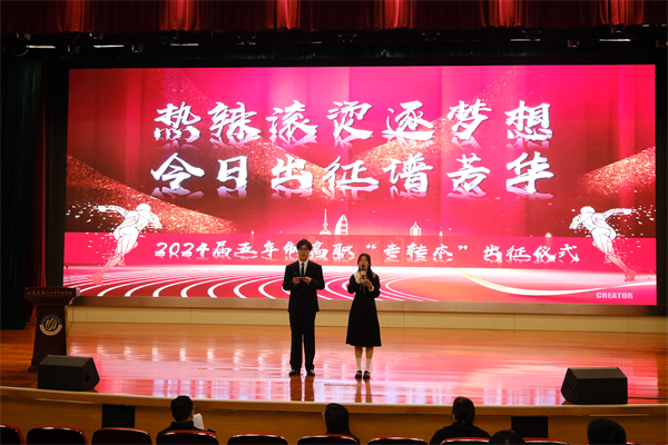 学生代表为出征仪式献上诗朗诵《全力以赴,未来很酷》,郑重承诺将不负未来,牢记使命,以实际行动谱写青春华章,为学校增光,为人生添彩。