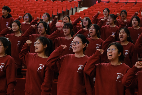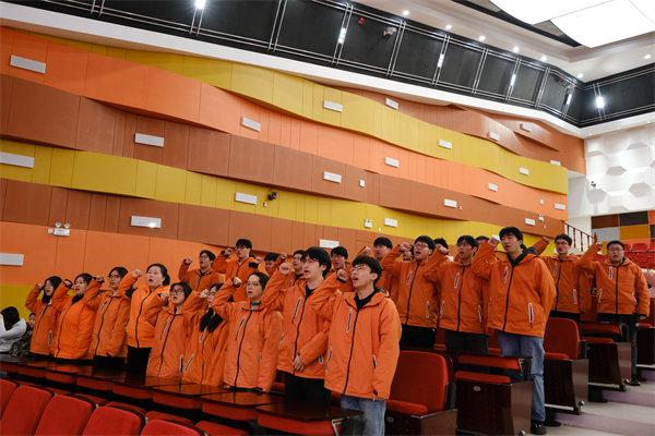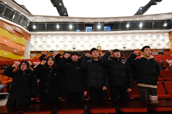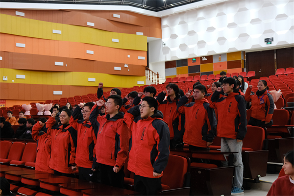 全体学生紧握右拳庄严宣誓,声音洪亮,斗志昂扬,滚滚的青春豪情将出征仪式推向高潮。