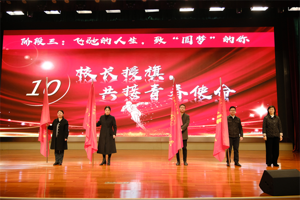 茅一娟向四大系部授出征“必胜旗”,宣布2024届五年制高职“专转本”出征。