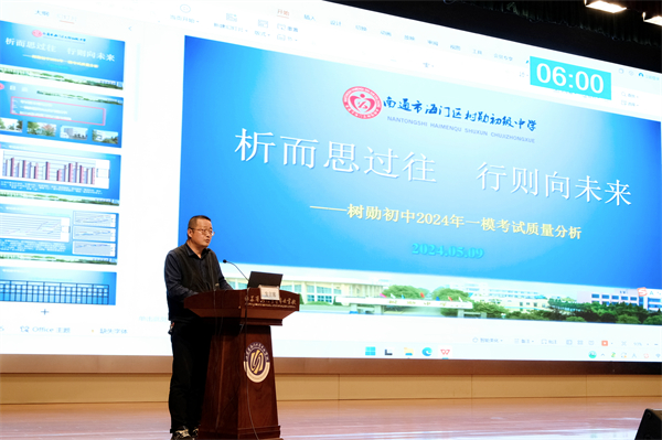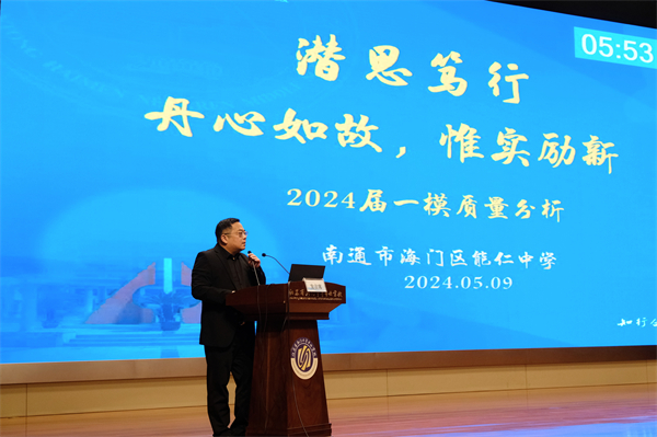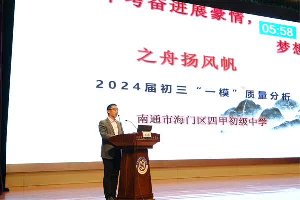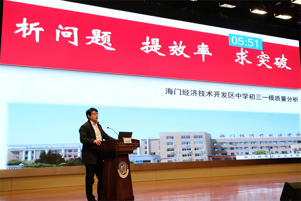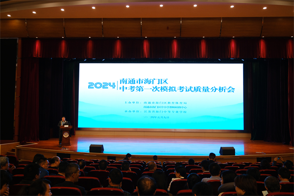 5月9日上午,海门区2024年中考第一次模拟考试质量分析会在海门中专謇公湖科教大会堂召开。海门区教体局副局长黄颖泉,海门区中小学教师研修中心副主任张永林,海门区教体局基础教育科副科长花韡,海门中专党委书记宋健,党委副书记、校长茅一娟出席会议,各初中校长、分管初三副校长、初三年级管理组、初三各学科备课组长、全体初三班主任参加会议。