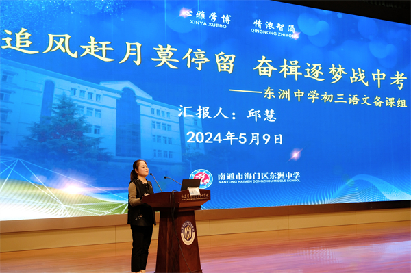 东洲中学初三语文备课组、首开东洲初级中学班主任代表、东洲国际学校、能仁中学、开发区中学、树勋初中、四甲初中分别从备课组建设、班级建设和学校管理等角度作交流发言。