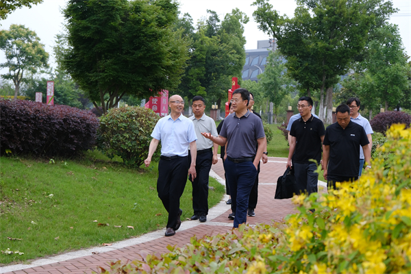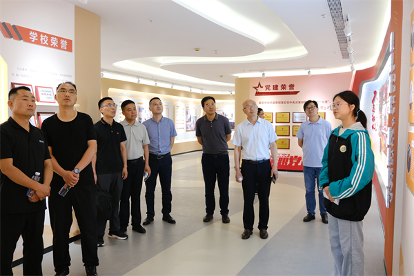 柯贤茂一行参观了党建文化主题公园、实训基地和校史馆,在謇公湖科教大会堂观看了专题片《先锋》,深入了解了学校的历史沿革、办学模式、教育教学等情况,对学校一流办学条件、高质量办学成效给予高度赞扬。