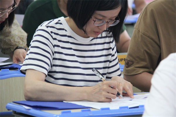 海门中专副校长杨一丹作考务培训,对考场各项实施程序、关键细节、监考纪律、突(偶)发事件的应急处理等进行业务指导。培训最后,全体监考老师进行了业务考核。