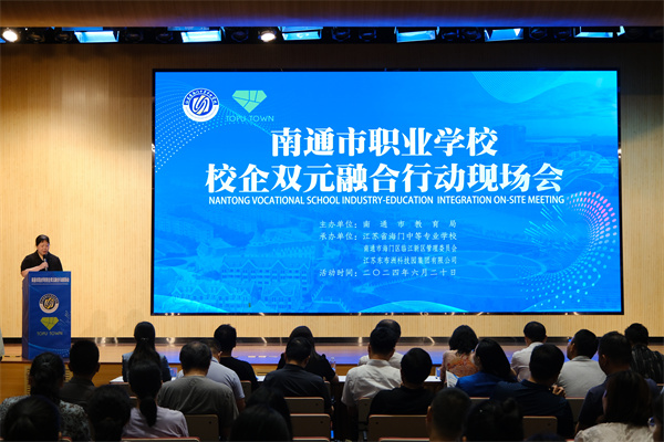 6月20日,由南通市教育局主办,江苏省海门中等专业学校、南通市海门区临江新区管理委员会、江苏东布洲科技园集团有限公司承办的南通市职业学校校企双元融合行动现场会在南通市海门区临江新区东布洲动画产业园举行。海门区政协副主席、东布洲科学城领导小组副组长徐骏,南通市教育局职业教育与高等教育处处长李维,南通市教育科学研究院职业教育研究室主任刘兵兵,南通职业大学电子信息与工程学院院长廖忠智,江苏工程职业技术学院信息技术学院副院长范君,东布洲国际动画孵化创作基地制片人司烁路、南通灵感罐头影视科技有限公司副总经理杨保运及南通市教育局、南通市教科院相关同志,相关企业代表,南通市各中等职业学校领导、校企双元行动负责人、系院负责人、专业负责人,南通市级以上校企合作示范组合主要负责人出席会议。现场会由海门中专党委委员、副校长杨一丹主持。