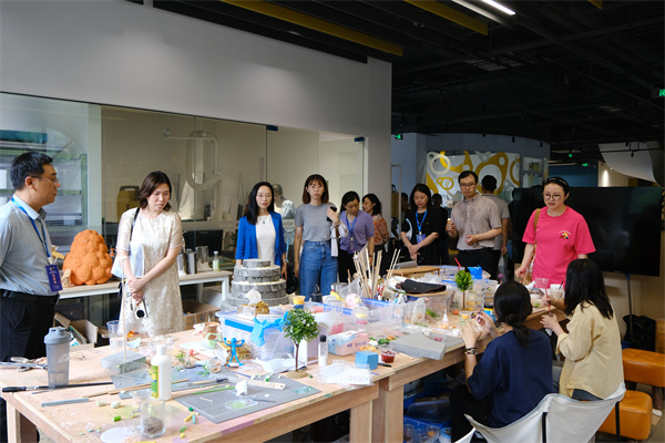 现场考察 与会者实地考察了长三角药物高等研究院、艺术展厅+IN剧场、小提琴工坊、东布洲国际动画孵化基地、南通灵感罐头影视科技有限公司等东布洲校企双元融合基地。