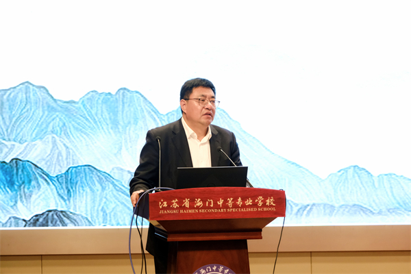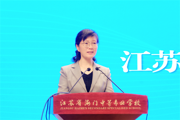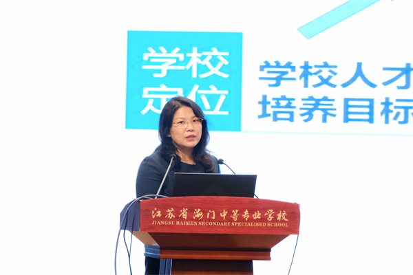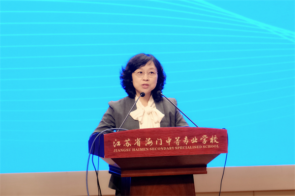 海门中专党委副书记、校长茅一娟致欢迎辞。茅一娟从“天时”之机、“地利”之便、“人和”之美三个方面介绍了海门中专秉持“构建人才高地,创造生命价值”的办学理念,积极建设职业教育“双优校”、产教融合“标杆校”、教师发展“先行校”、国际合作“特色校”等方面取得的显著成绩,希望通过本次培训交流开启思想互融、行动互助、发展互联的美好开端,一起为培养更多高素质技术技能人才、为实现中国式现代化贡献职教力量。