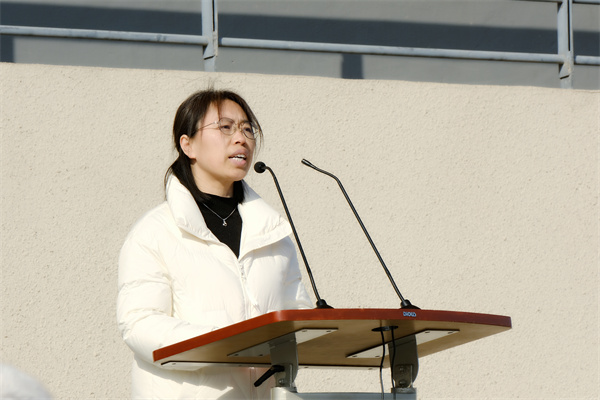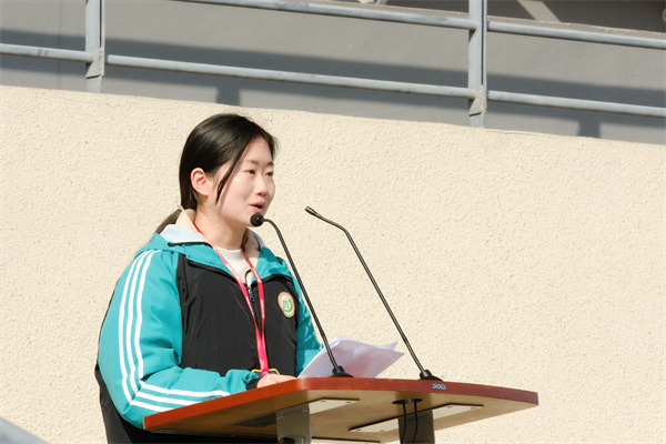 学生干部代表蒋沁怡围绕“新起点、新学期、新征程”作表态发言,号召全体同学用勤学搭建成长的阶梯,用实践铸就腾飞的翅膀,在学校的新篇章里留下无悔的足迹,在时代的长河中激起耀眼的浪花!