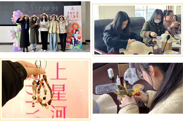 本次团建活动包含了香囊制作、手工包 DIY 、诗意流沙画、漆扇 DIY 、园艺盆栽、养生锤 DIY、快乐 K 歌、巧厨包饺、手链 DIY、美甲体验、苏绣平安符、小夜灯 DIY、美帽生活等丰富多彩的项目。女神们穿梭期间,感受美好,传递祝福。现场花香与笑容交织,优雅与智慧绽放,欢声笑语共度美好时光。