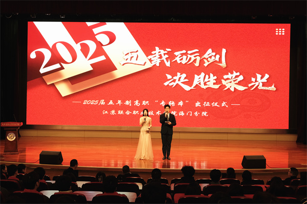 3月21日上午,江苏联合职业技术学院海门分院在謇公湖科教大会堂举行了2025届五年制高职“专转本”出征仪式,为即将踏上征程的学子们助威壮行。党委书记宋健,党委副书记、校长茅一娟,大中专系部主任室成员出席出征仪式。2025届“专转本”全体师生和21级学生代表共同见证这一激动人心的时刻。