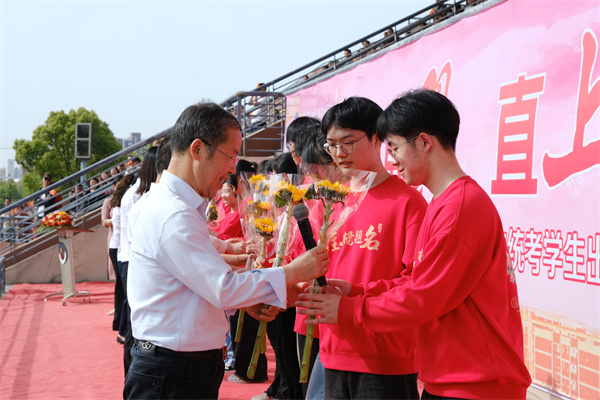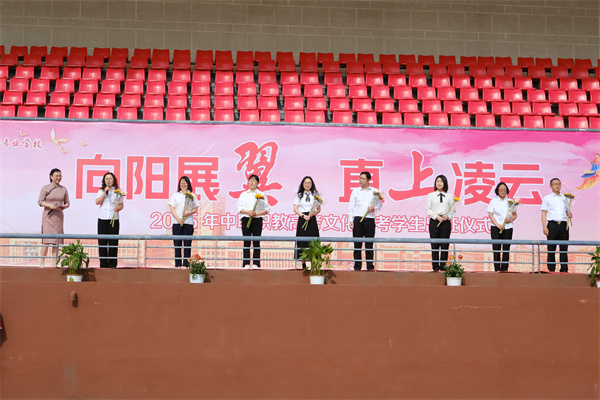 破晓摘星 八名高三老师代表向全体高三学子送上殷切期许:愿诸君执笔为剑,在高考的战场尽展锋芒;更盼少年振翅高飞,于人生长空书写锦绣华章。老师们还为学生送上向日葵,祝愿全体高三学子一举夺魁。