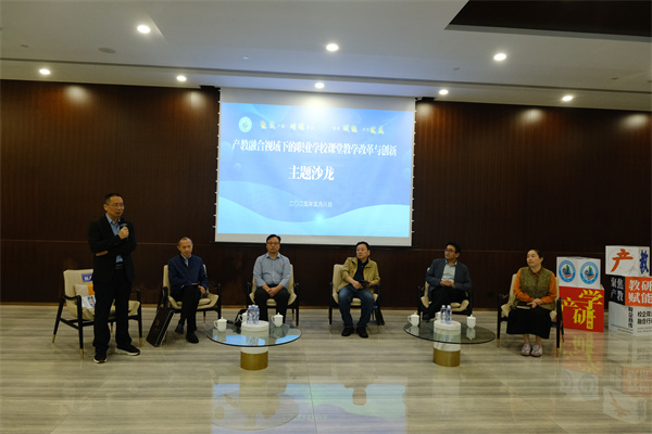 常州市教育科学研究院副院长杨永年主持主题为“产教融合视域下的职业学校课堂教学改革与创新”的沙龙活动。苏州市教育科学研究院职教研究所所长陈高祥、无锡市教育科学研究院职社教研室主任奚军、常州市教育科学研究院职教研究所所长赵一凡、泰州市教育局高职处处长蔡明、南通市教育科学研究院职教教研员沈敏敏围绕主题交流职业教育产教融合新思考,共话职教课堂变革新方向。江苏省教育科学研究院职业教育与终身教育研究所研究员王新国、南通市教育科学研究院副院长顾志刚作精彩点评。