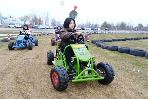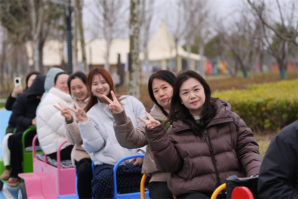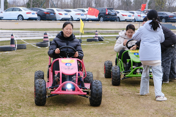 卡丁车赛道上,平日里温婉端庄的女教职工们化身“女车手”,踩下油门,在春风中尽情驰骋;童话小火车则载着女教职工们驶向诗和远方,享受这份难得的惬意与悠闲。